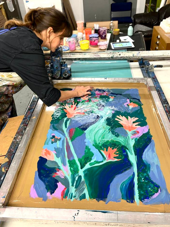 Marie has been screenprinting for over 10 years. Her practice continues to evolve and more recently she has been creating fine art monoprintings. The combination of printing and painting allows her to create her unpredictable and truly unique artwork.